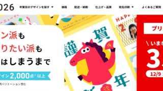 年賀状印刷 【2025→2026年版】しまうま年賀状のクーポンコード/早割などキャンペーン情報まとめ 「しまうまプリント」の年賀状印刷サービス「しまうま年賀状」をお得に注文するためのクーポンコード(現在は2025年→2026年のもの)をはじめ早割や印刷料金が10枚分タダになる初回限定特典などキャンペーン情報をまとめて紹介していきます。この記... 2025.12.07 年賀状印刷